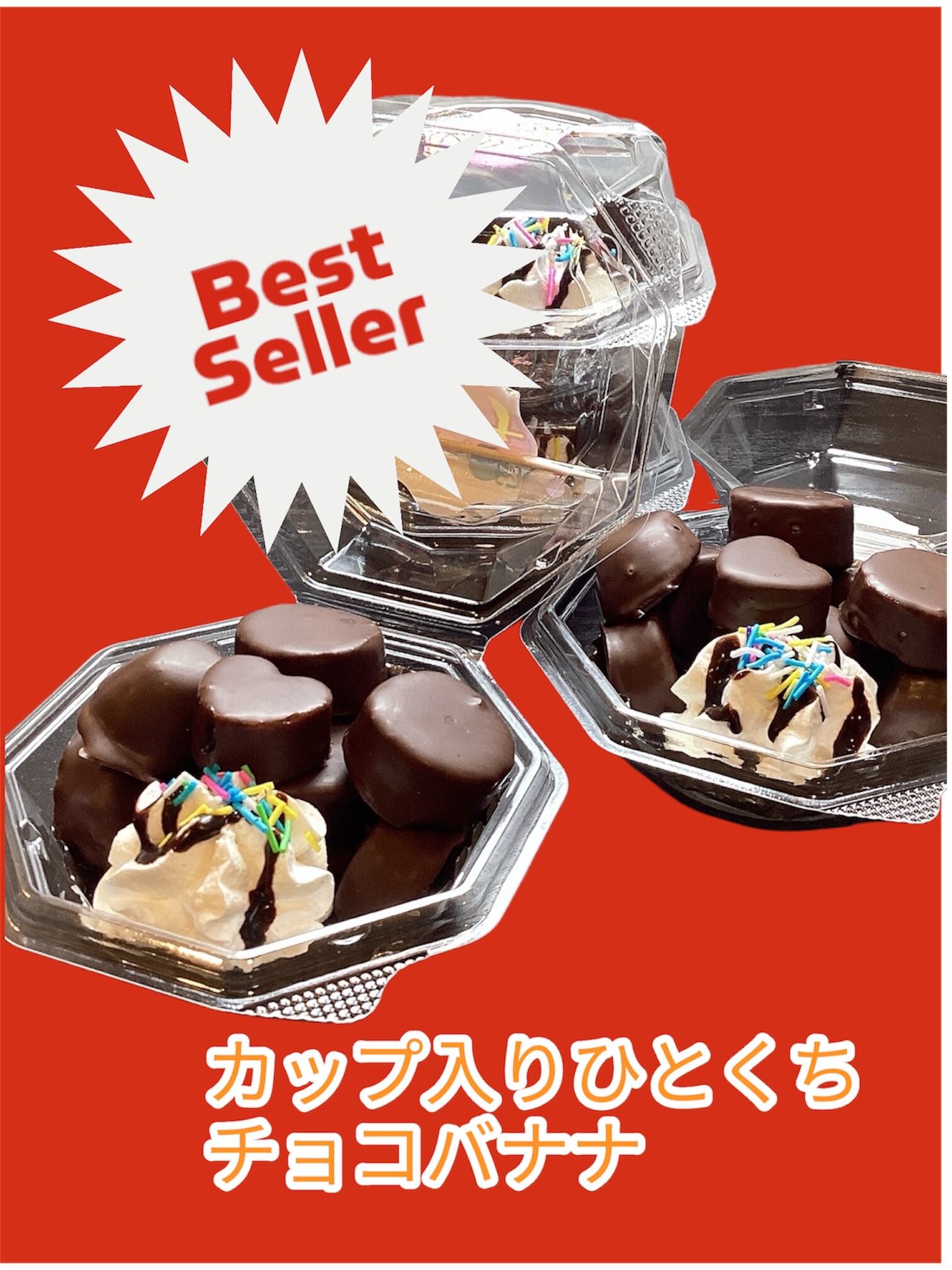 バナナにチョコをコーティングしカップに入れ、ホイップを添えた